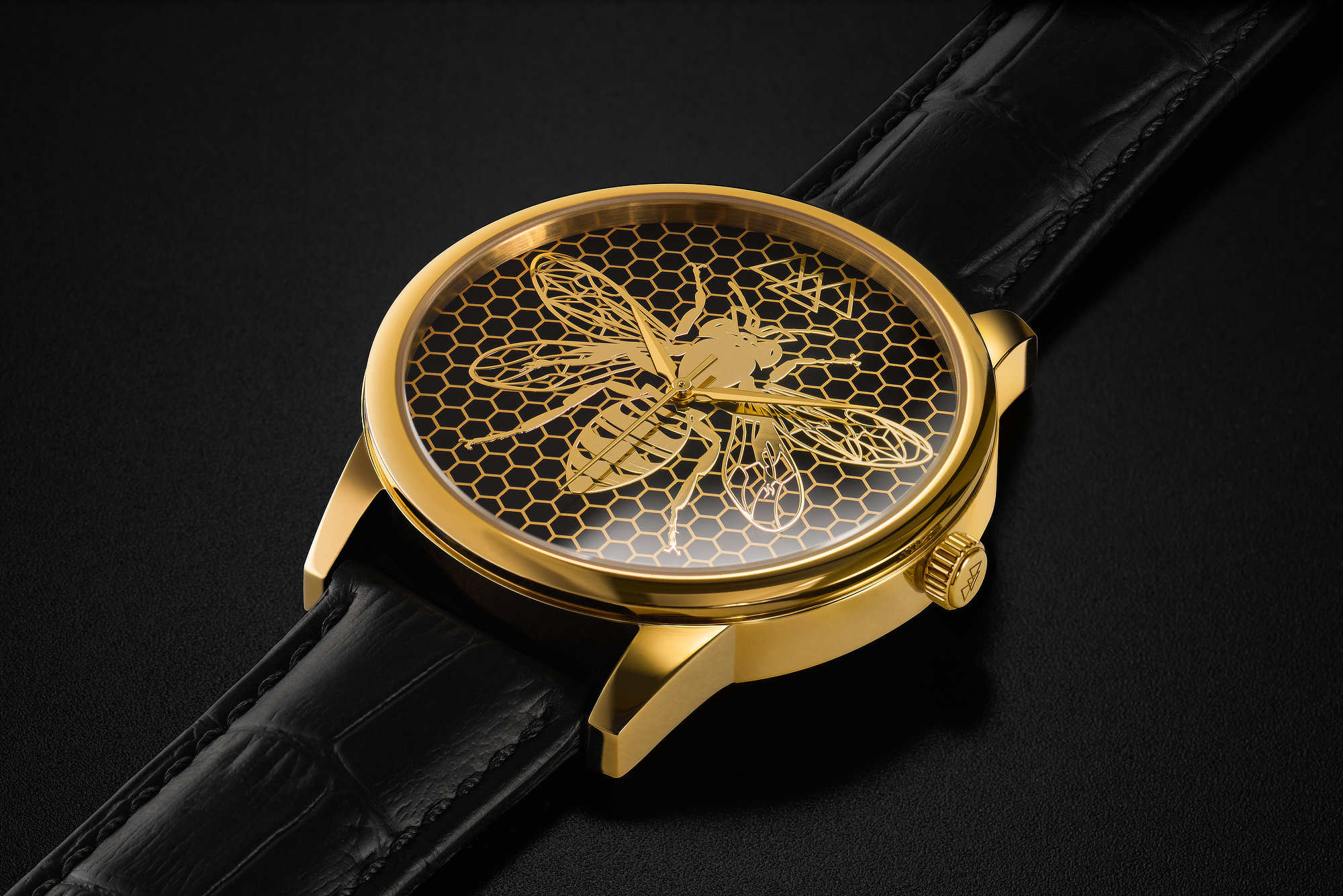Paauksuota bitė tampa simboliu vyrui, kuris nebijo fantazijos, vertina kūrybišką mąstymą ir renkasi detales, atspindinčias jo individualumą. Juodos ir aukso spalvų derinys kuria šiuolaikišką, rafinuotą toną, o korio struktūra pabrėžia discipliną, vidinę jėgą ir kryptingumą.